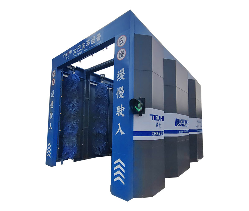 清洗時由駕駛員配合操控。巴士快速洗車機可進行連續快速洗車,每小時高可達80輛,自動化程度高、洗車數量大、占地面積?。粡V泛應用于各大公交系統,停車站場,以平均每小時20輛的清洗速度作業,常見的情況為兩臺或三臺并聯式安裝,可滿足停車量為1000左右的大型停車場的需求。