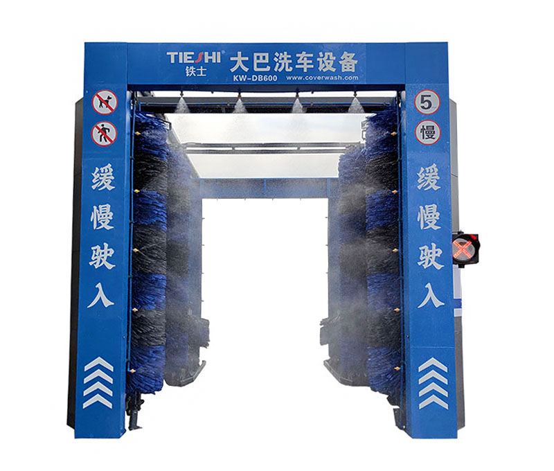 鐵士KW---400D型大型通道式電腦洗車機專門為清洗中巴車、大客車、集裝箱而設計,采用通道式洗車方式,車輛由駕駛員自行慢速駛入機器清洗。四組毛刷分別清洗車輛的前后面和兩側面。清洗時由駕駛員配合操控。巴士快速洗車機可進行連續快速洗車,每小時高可達20輛,自動化程度高、洗車數量大、占地面積?。粡V泛應用于各大公交系統,停車站場,以平均每小時20輛的清洗速度作業,常見的情況為兩臺或三臺并聯式安裝,可滿足停車量為1000左右的大型停車場的需求。